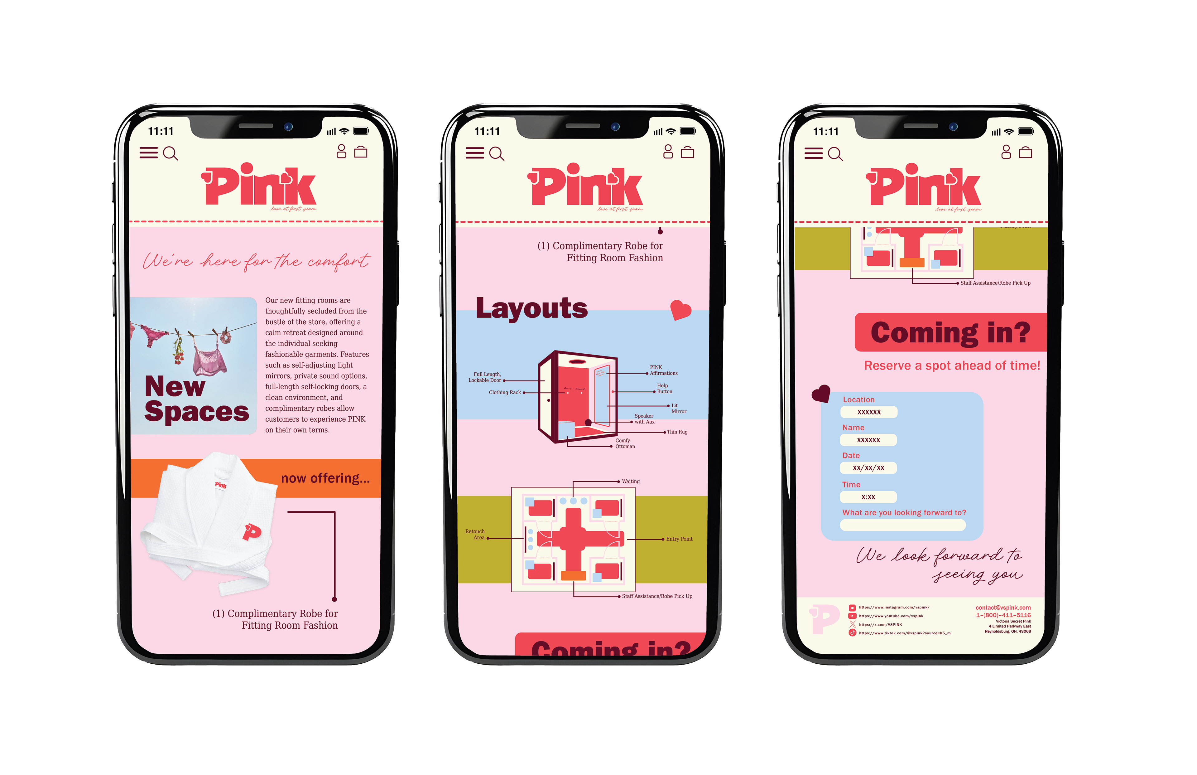 A group rebrand of Victoria's Secret's PINK. The goal was to research what ways the brand felt outdated in society, and revamp it into something that makes sense for the company in modern times.